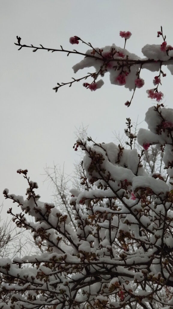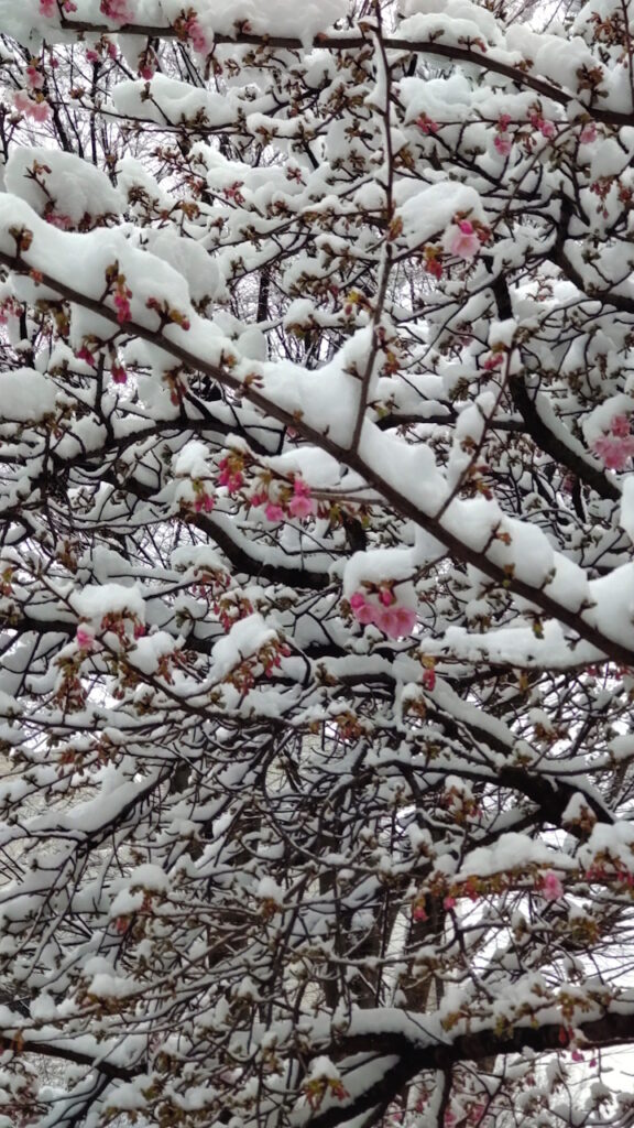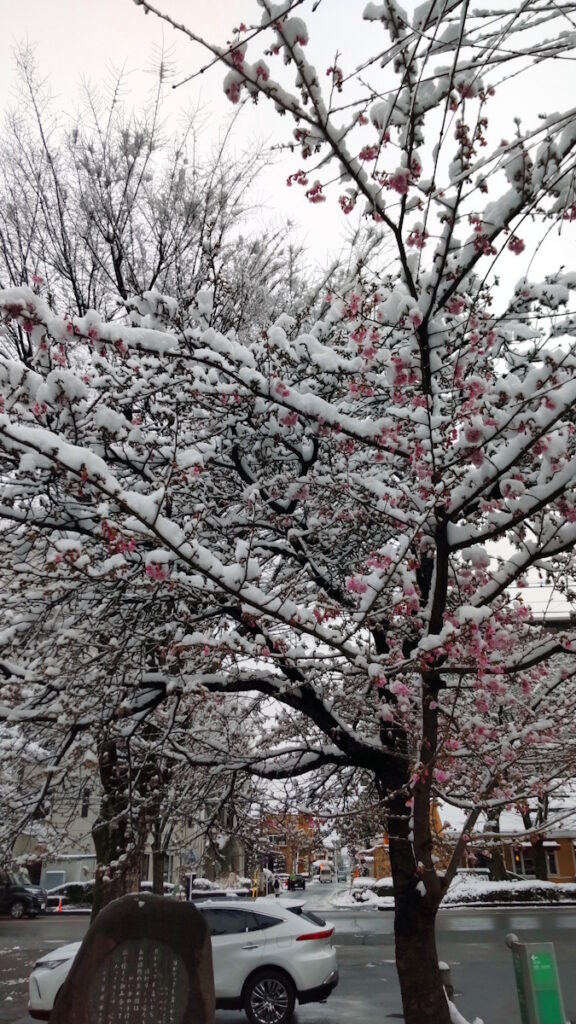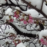 昼過ぎに雪も止んで帰るころには半分以上は解けていました。市民会館前の河津桜が5~6分咲きで白とピンクのコントラストが・・・バックが青空だとなお良かったのですが。センターに来た子供たちには恵の雪、神奈川の水瓶にも恵の雪だったでしょうか。